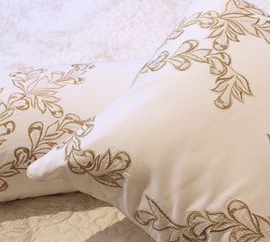 The same pattern is carried onto the stunning cushions and shams and a showstopper rectangular piece in the front. The collection of seven made from premium materials harmonizes an ensemble of elegance. This set includes a bed cover, four pillows and three cushions.
