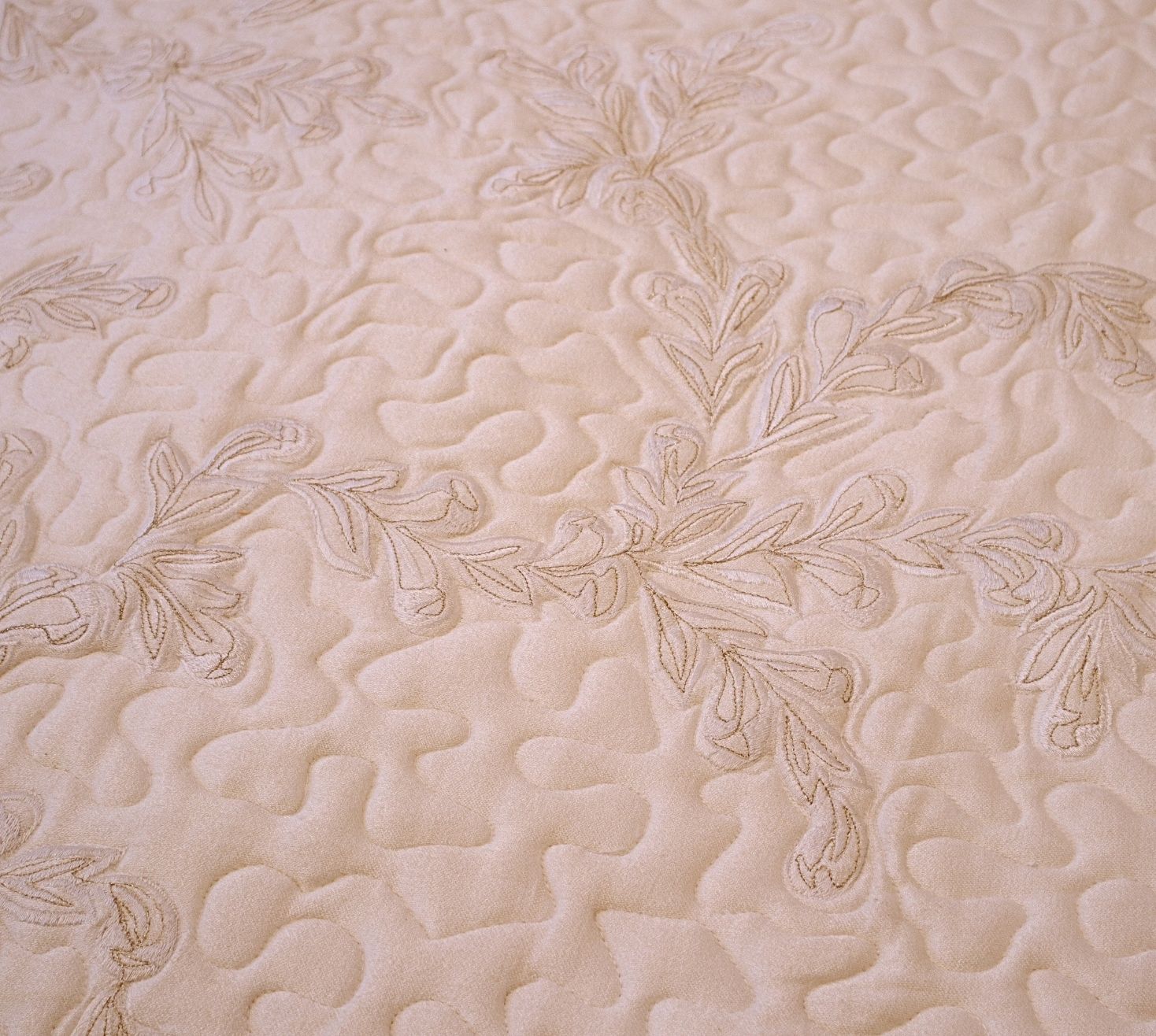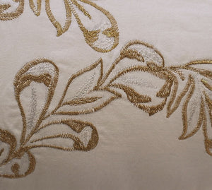Add this ethereal 8-piece bedding set to your collection. The intricate patterns and delicate textures transport you to a haven of luxury. Crafted with the finest cotton satin, this bed cover is heavily patchworked and then enhanced with silk threads in off-white and gold.