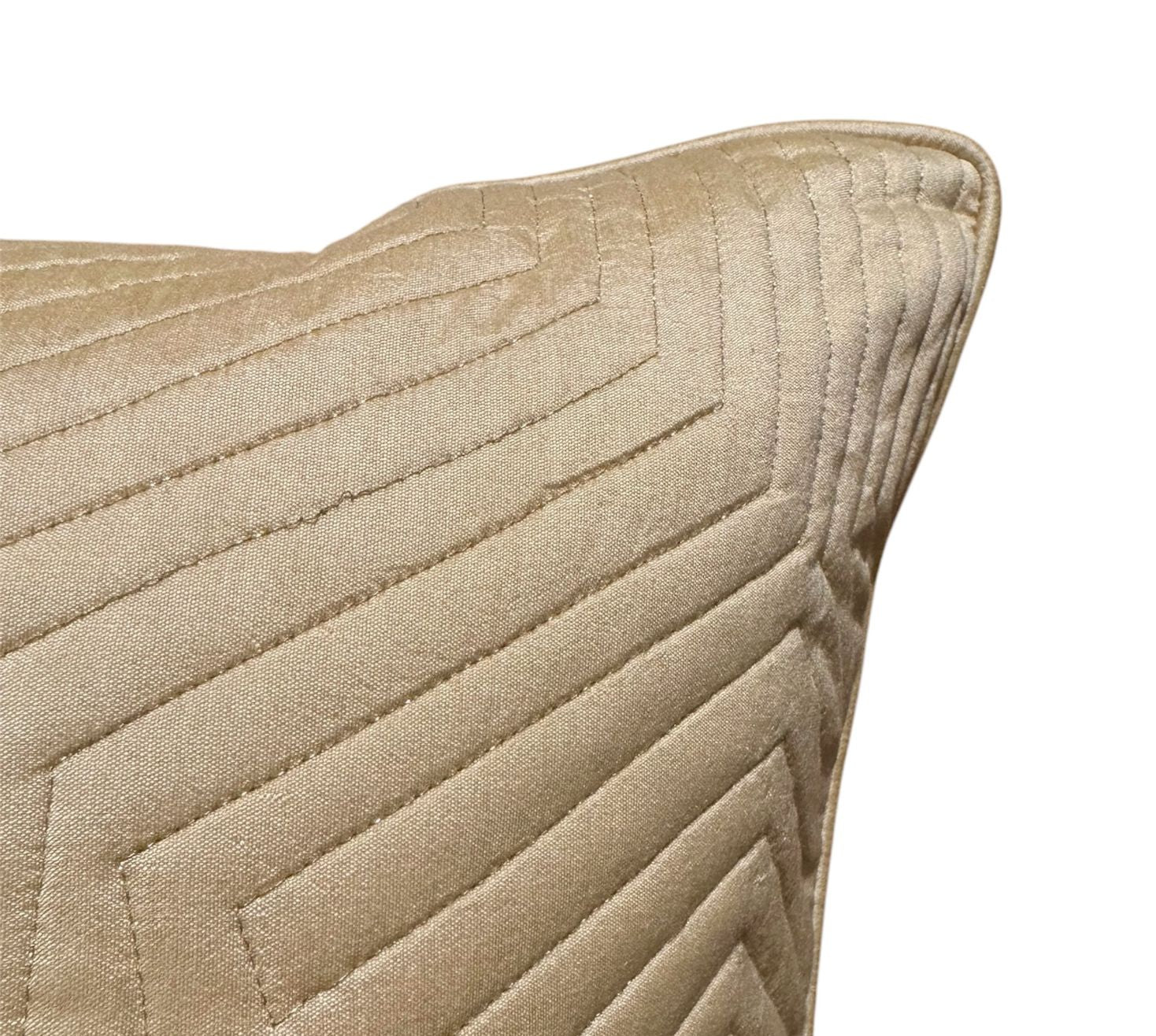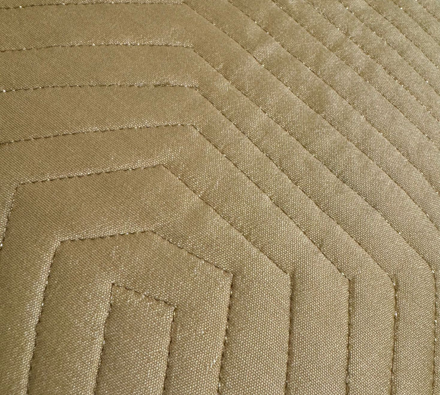 Radiating warmth and opulence is our cushion cover is exquisitely crafted from gold cotton satin. Its quilted pattern creates a rich texture, enhancing the rich, luminous backdrop. Delicate golden zari accentuation is thoughtfully woven throughout, adding a refined shimmer that underscores the artisanal quality of the piece.