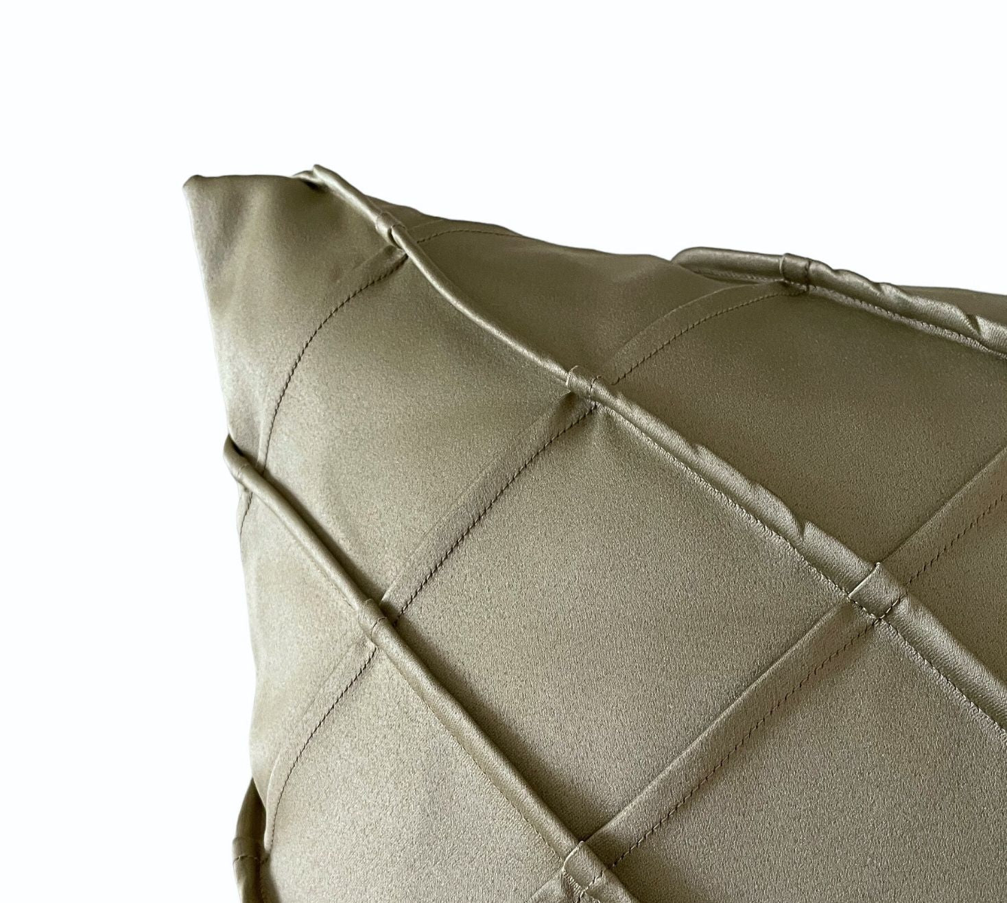 One of our most celebrated seating cushions, our olive satin cover is plush with a criss - cross pattern in the same fabric. Where comfort meets quality, our cushion is lined with olive satin and comes in a size of 20''/20''. Designed to go with single and big sofa seaters, it is soft to touch and bears a vogish attitude. Crafted with super-smooth satin, it is gentle and exuberates magnificence. Comes with a zipper at the back.