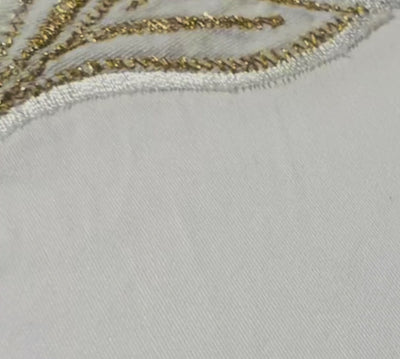 The cushion cover exuberates an opulent look and can be paired with bedding lending as a showstopper or can be used in a formal and regal set-up. The hand-crafted cushion cover in off-white and gold looks resplendent and stands out amongst the rest. The lower fabric features a zip at the back.