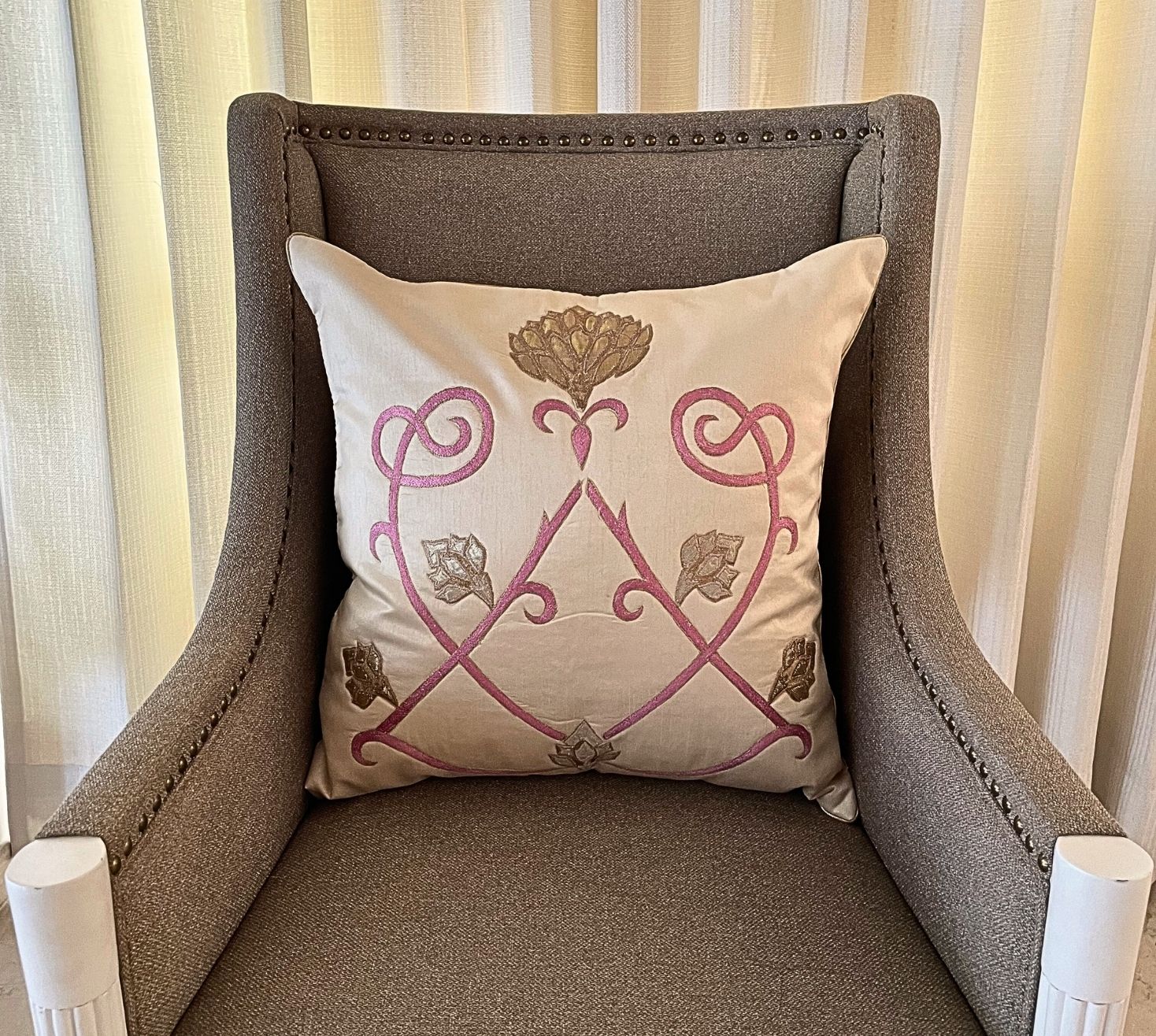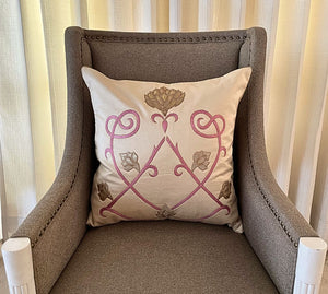 The golden kamal embroidered cushion cover