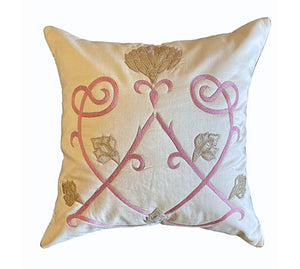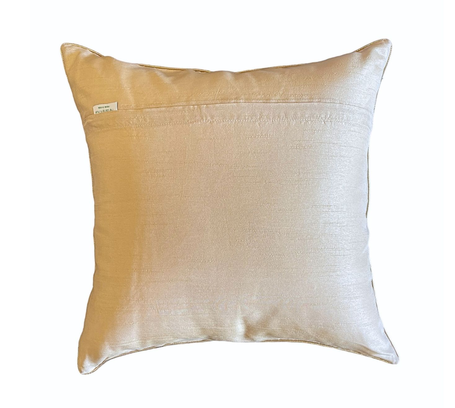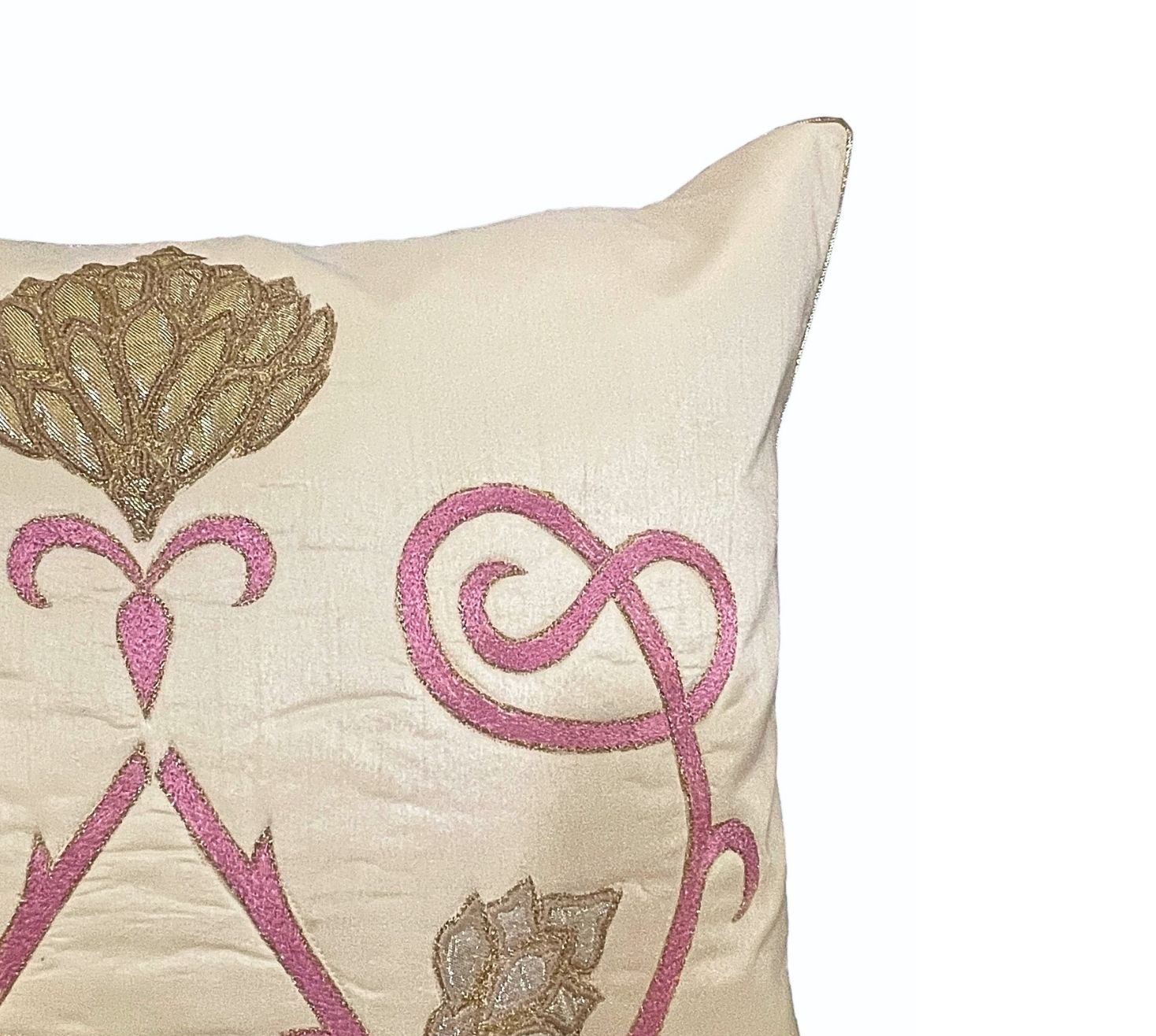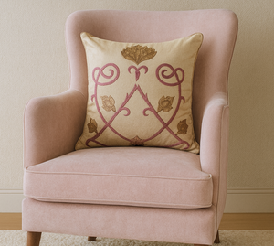 The 'kamal ‘ is one of the first collections conceived by the founder of The Eastern Hues. Over the years, it has grown and evolved as an expression but it chooses to be our most desired ensemble. The hand crafted kamal cushion is an amalgamation of delicate branches and buds that finally bloom into a fully grown kamal/Lotus. The embroidery invloves patchwork, zari and resham. The buds unfurl and look spectacular in all its grandeur. Our mixed dupion cushion cover is a fine fit for a formal setting with the lower fabric featuring a zip at the back.