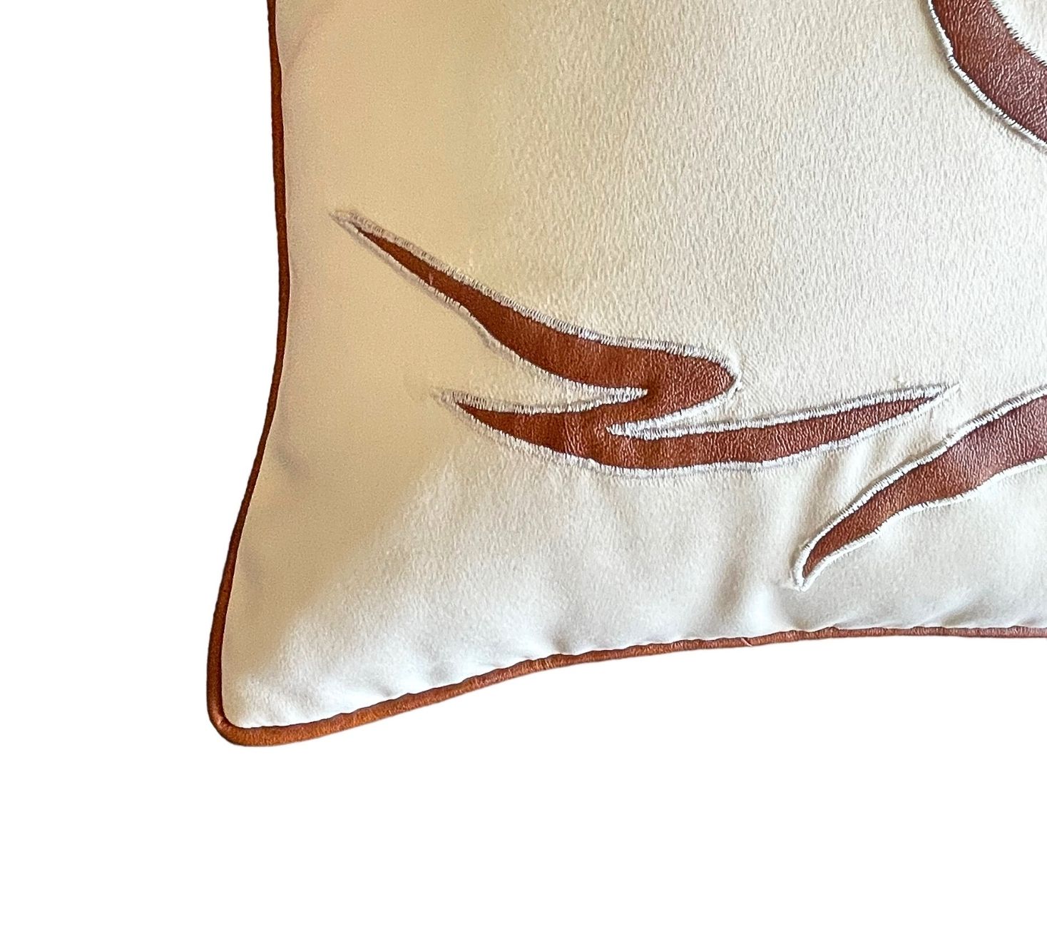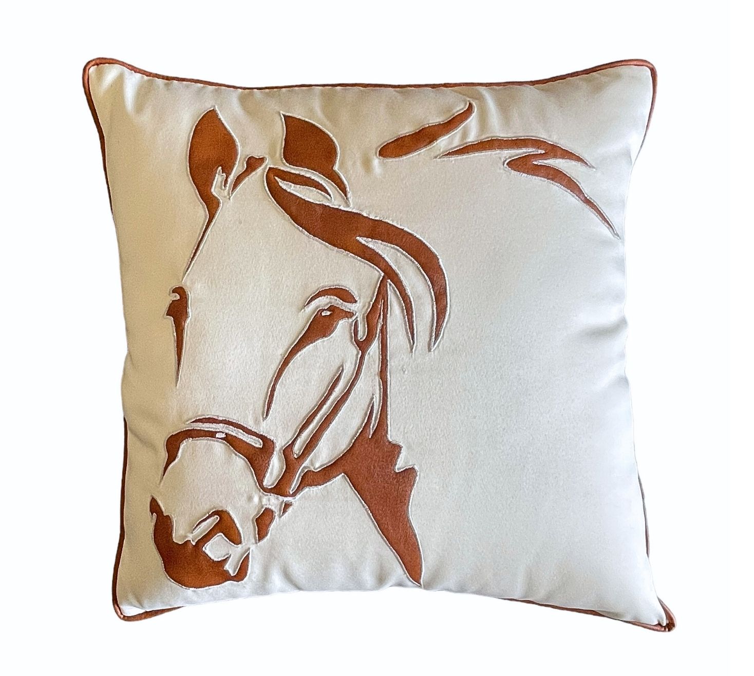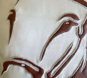 Smart, majestic and strong just like the stallion is our cushion cover in vanilla coloured satin. The cushion is handcrafted with pecan brown leatherite to showcase an attractive feature. The leatherite is patchworked upon and then finished with silk resham to give it a luxurious look. The lower fabric is similar to that of the front and is defined with a leatherette piping and a zip at the back.