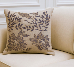 Regal Floral leaf embroidered linen cushion cover
