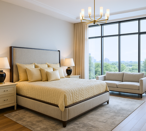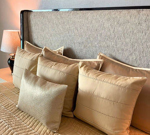 From the house of The Eastern Hues, we present to you a luxury king sized quilted bed cover set that is handcrafted in a horizontal chevron pattern. For a fine dinner at home or an opulent evening, it looks resplendent and comes with a trilogy of shams of 20/26 inch and 20/20 inch cushions. The centerpiece crafted in silk and diagonally quilted is defined and understated. The richness of the fabric is delightful and this one is for a special occasion.