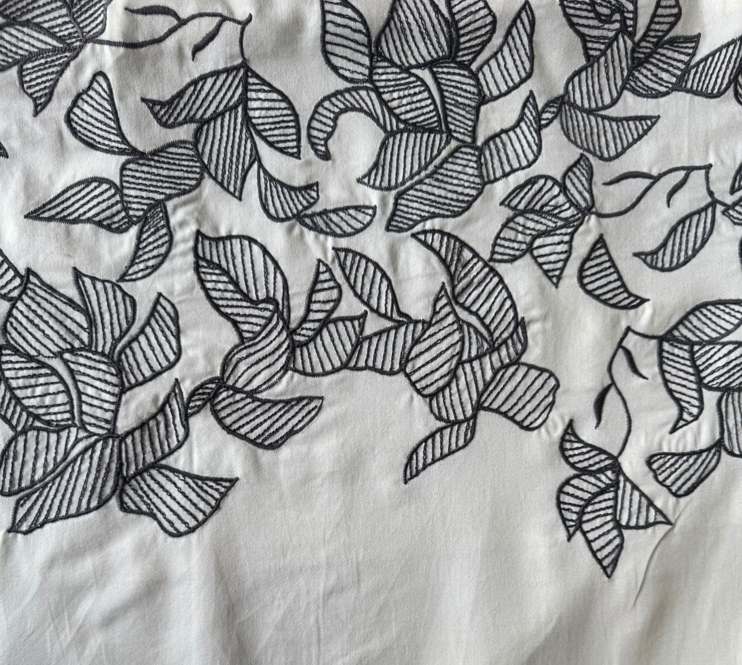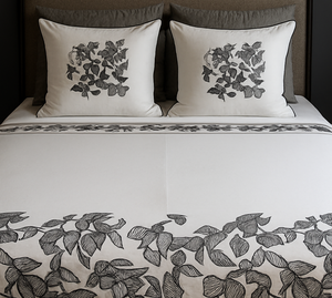 Transform your bedroom into a sanctuary of calm and elegance with our king-size white duvet cover set, adorned with subtle steel grey embroidery in floral and linear designs.