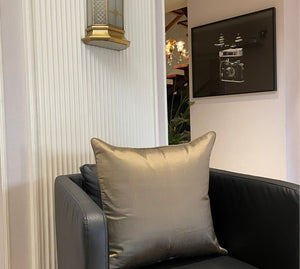 A timeless cushion cover crafted from luxurious brown silk, exuding understated elegance. The smooth, lustrous fabric catches the light beautifully, enhancing its rich, warm hue. Minimal yet sophisticated, it serves as a versatile accent for any décor style. Perfect for adding a touch of quiet luxury to sofas, beds, or statement chairs.