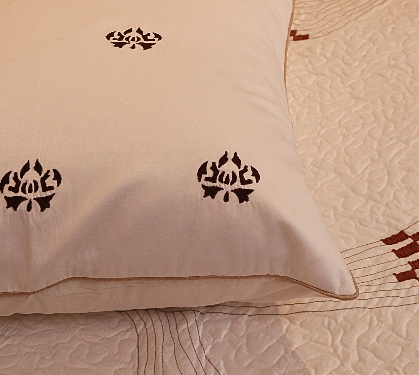 Treasured Hues of White and brown Quilted Bedspread